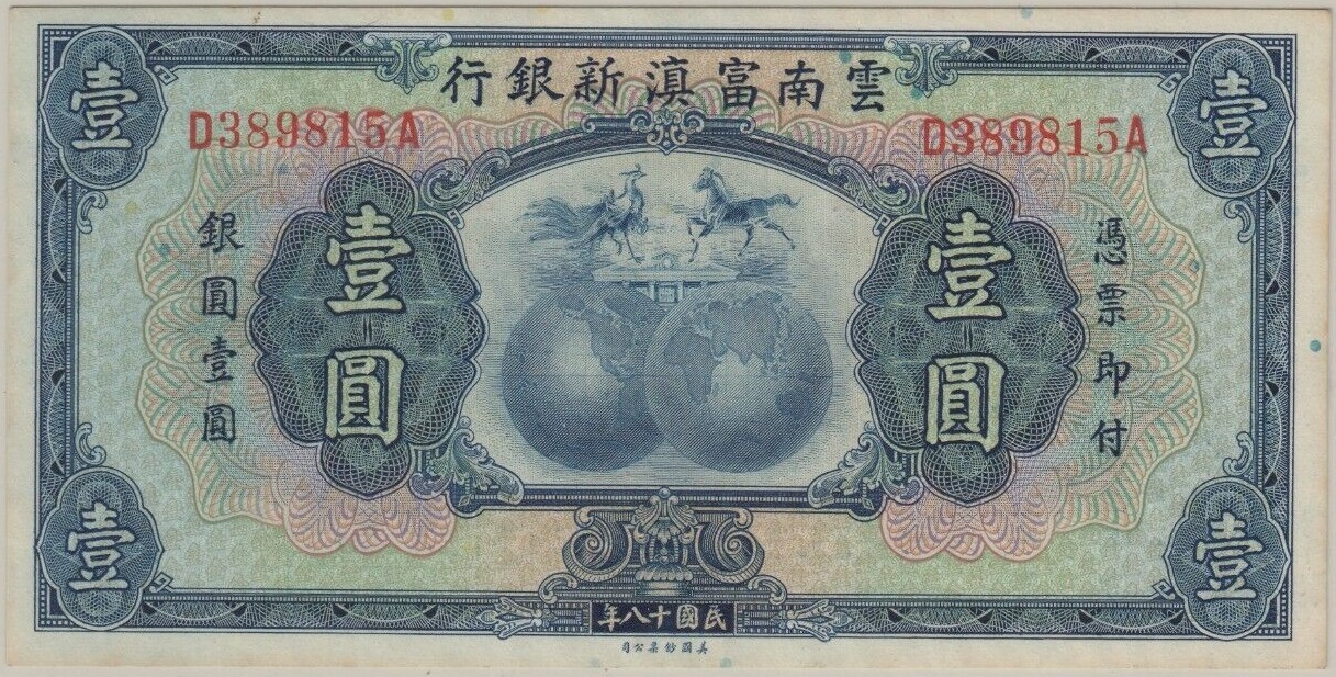 Categories: 壹圆, 普通, 纸币, 中国(民国), 富滇新银行, 地方系列, 云南省